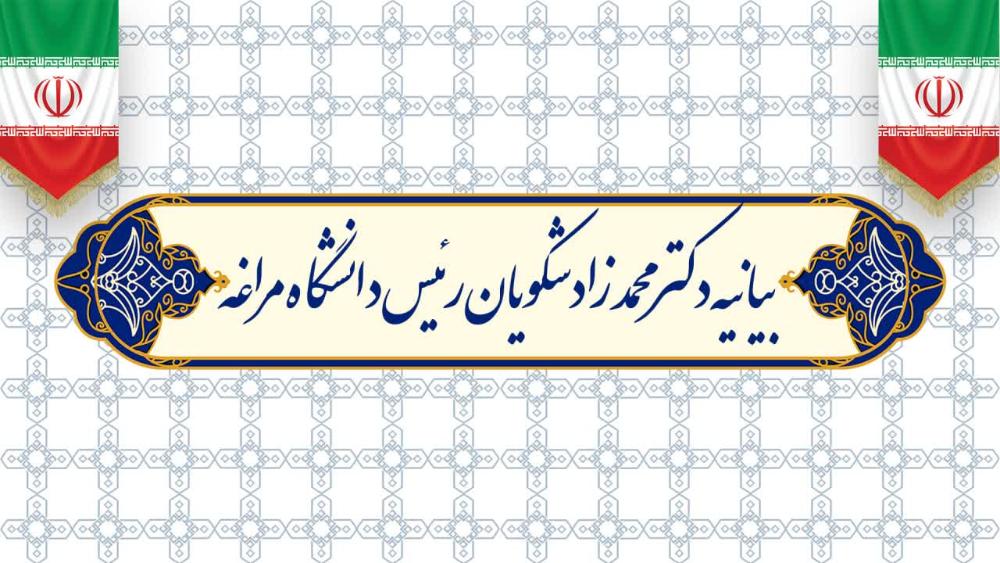 اینجانب به نمایندگی از دانشگاهیان دانشگاه مراغه ضمن گرامیداشت یاد و تجلیل از خدمات ماندگار شهدای خدمت و با تقدیر از تلاشهای شبانه روزی دانشگاهیان و عموم فعالان این رویداد خطیر، بار دیگر پیروزی و فزونی اقتدار و عظمت نظام مقدس جمهوری اسلامی ایران را به رهبر فرزانه انقلاب اسلامی، مردم متدین، میهندوست و وظیفهشناس ایران اسلامی تهنیت عرض مینمایم.